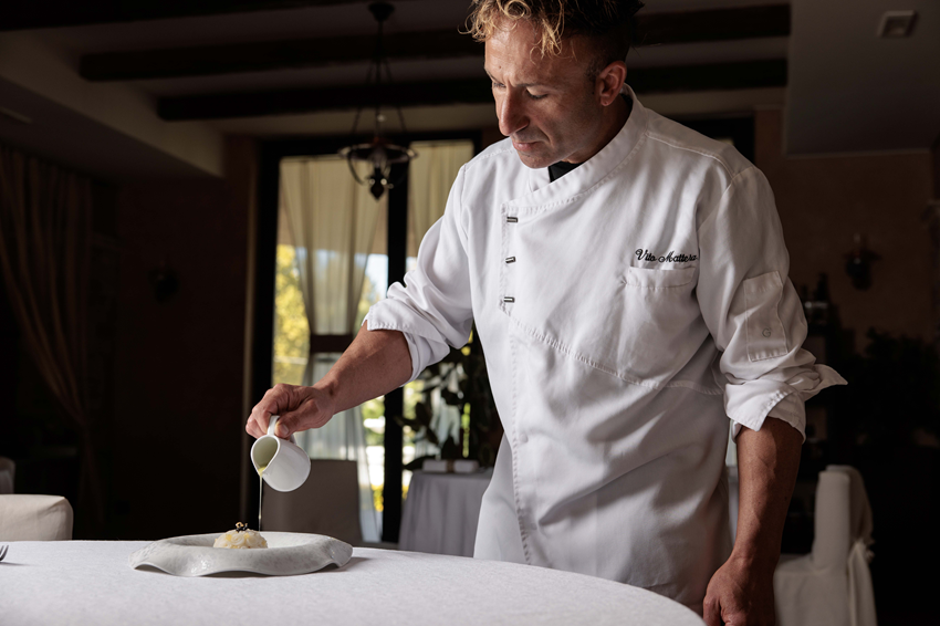 La cucina di Vito Mattera nasce da una visione precisa, in cui l’artigianalità è linguaggio quotidiano.